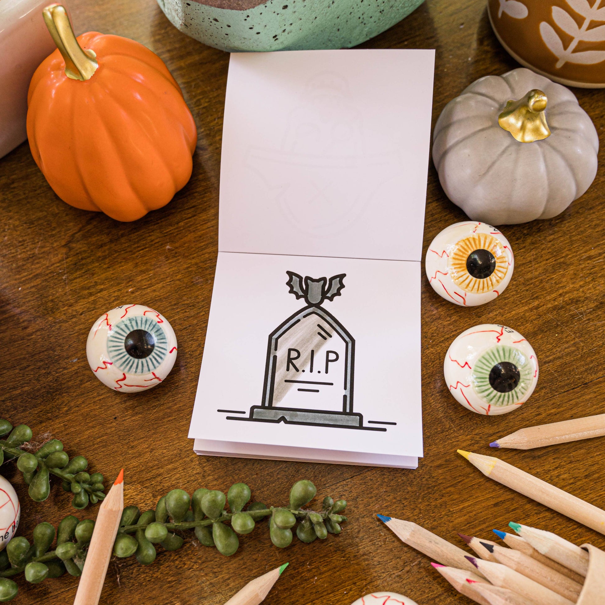 Enjoy a spooky and creative escape with our Halloween Mini Coloring Book, an ideal Halloween gift for both kids and adults. Perfect for a candy-free treat or as a charming addition to a Boo Basket, this compact coloring book offers a delightful way to unwind. Each page features whimsical Halloween designs, from zombies to bats, providing a quick and relaxing coloring experience.
