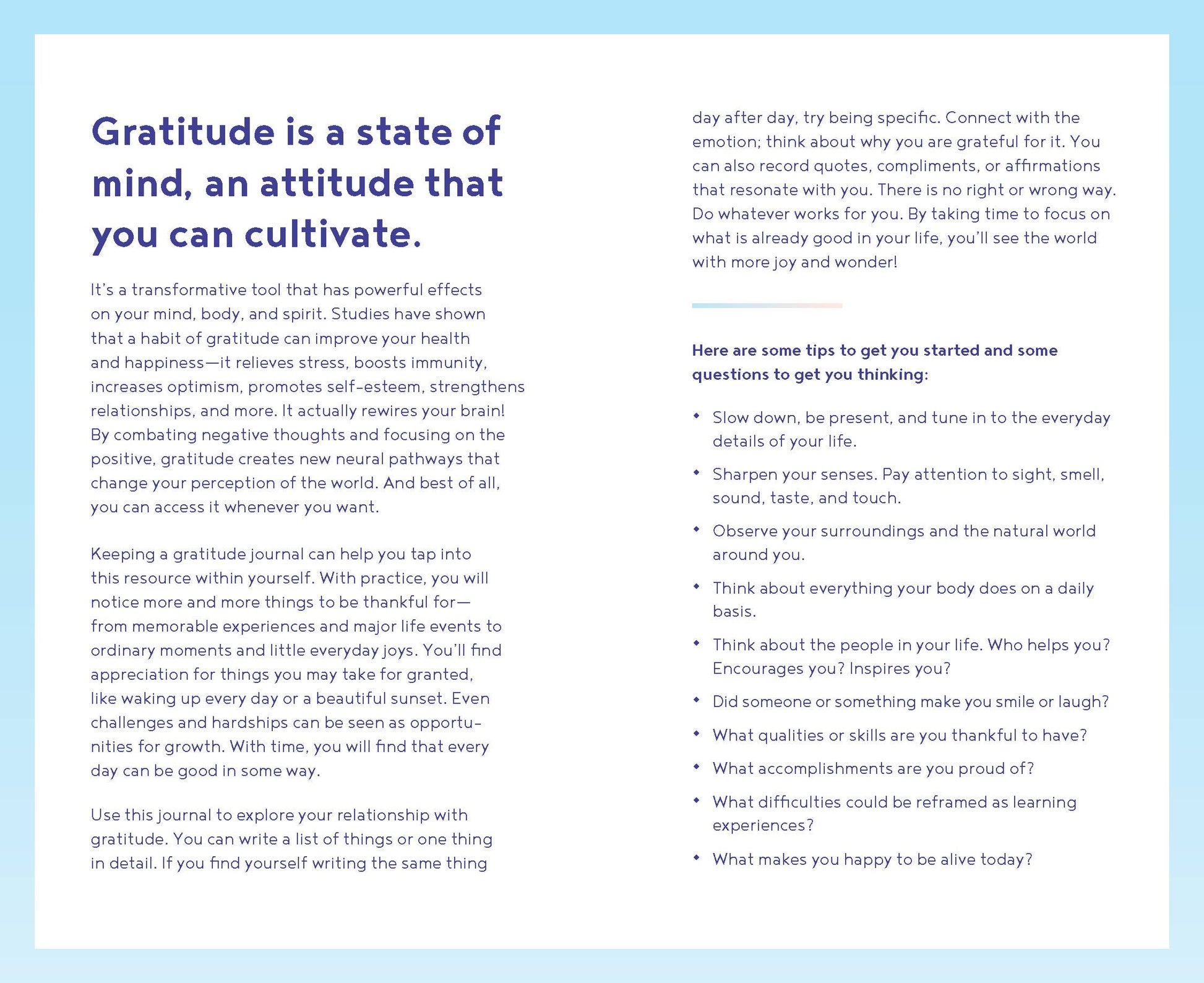 This new journal in the bestselling ONE LINE A DAY series is an easy way to cultivate an attitude of gratitude! Use this three-year memory book to capture everything you are grateful for—both big and small. Every day, jot down something positive. It could be one thing or a list of things—someone you appreciate, a simple pleasure, a memorable occasion, or even a challenging experience. With practice, you will find that there is always something to be thankful for. With a foil-stamped padded cover and gilded edges, this lovely keepsake will serve as a record and a reminder of life's daily blessings.