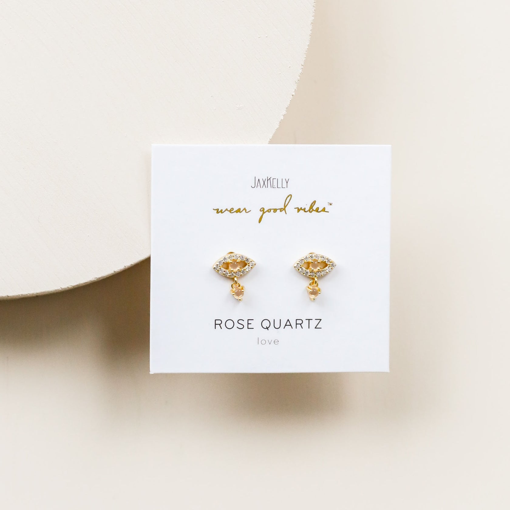 Evil Eye Drop Earrings - Rose Quartz - JaxKelly