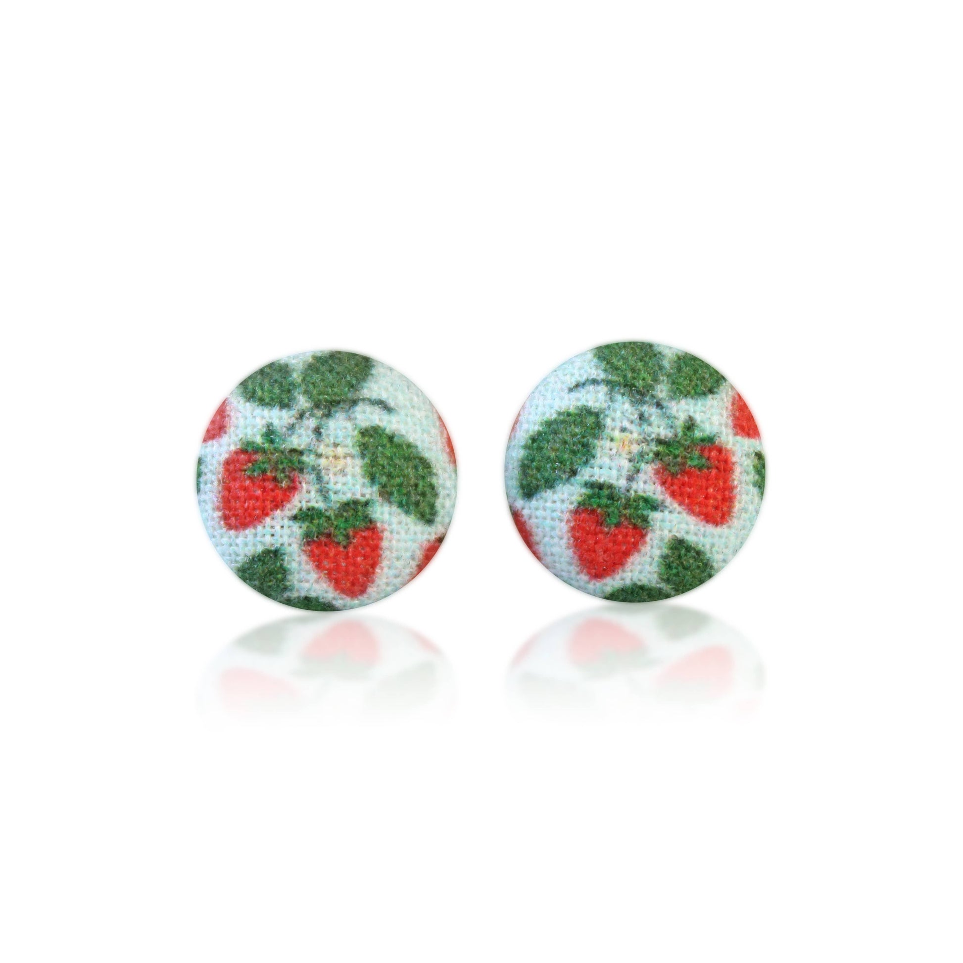 Lightweight earrings measure approx .5 inch wide and have a hypoallergenic, raw titanium post. Fabric buttons are made of 100% cotton, hand stretched over an aluminum dome.